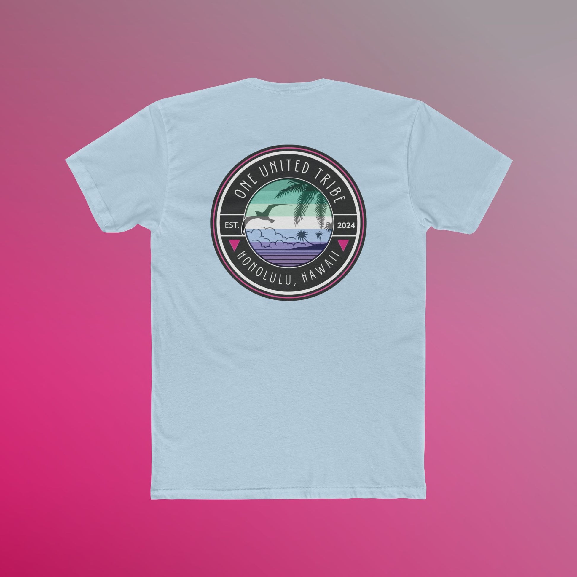 Celebrate your pride and love for the islands with the Gay Male Pride Beach T-shirt. Featuring a bold and unique beach-inspired design with the gay male pride flag colors, this shirt represents inclusivity, unity, and connection to the LGBTQ+ community. With Honolulu, Hawaii proudly displayed alongside the One United Tribe message, this shirt brings together tropical vibes and a powerful symbol of pride and equality.