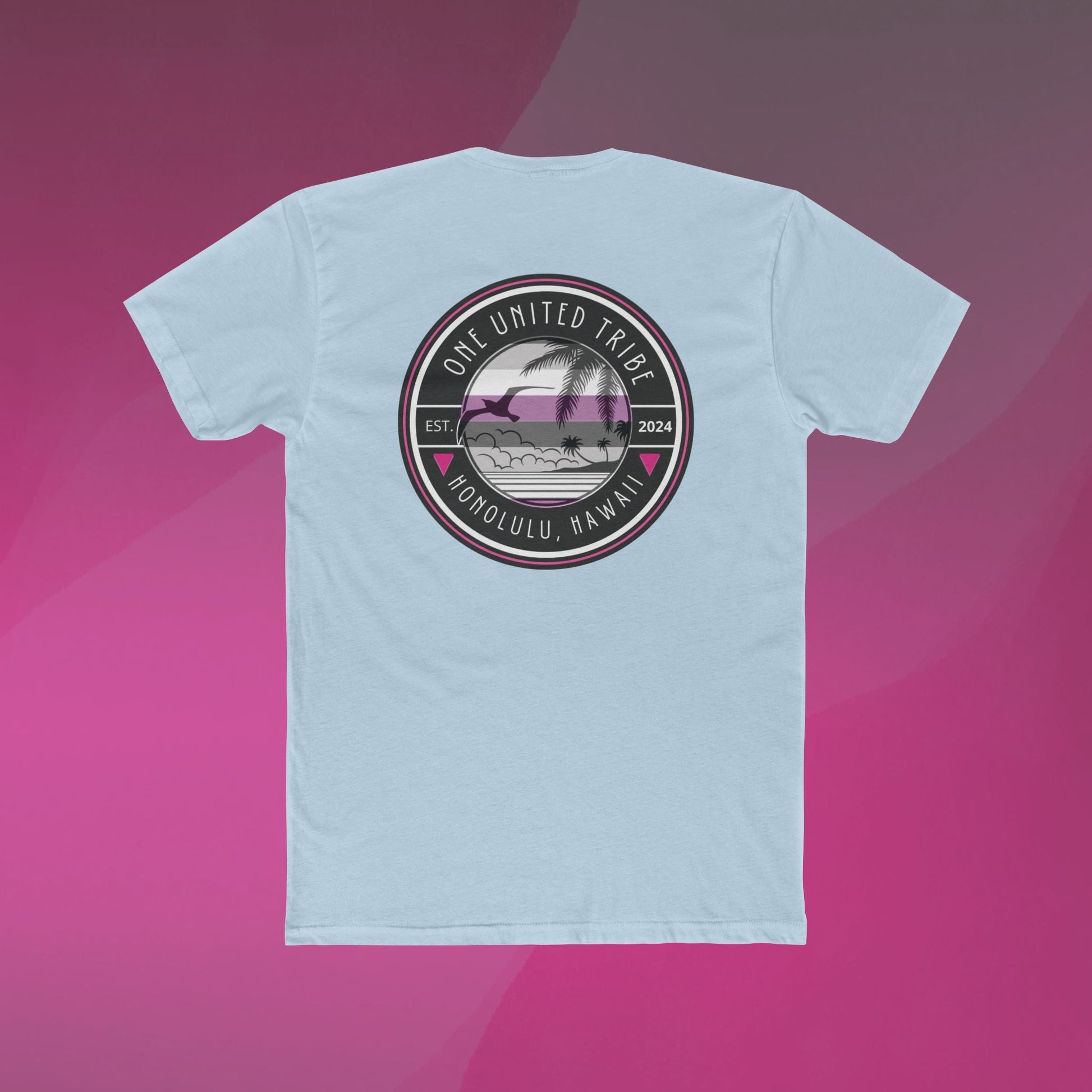 Celebrate your pride and love for the islands with the Asexual Pride Beach T-shirt. Featuring a bold and unique beach-inspired design with the asexual pride flag colors, this shirt represents inclusivity, unity, and connection to the LGBTQ+ community. With Honolulu, Hawaii proudly displayed alongside the One United Tribe message, this shirt brings together tropical vibes and a powerful symbol of pride and equality.