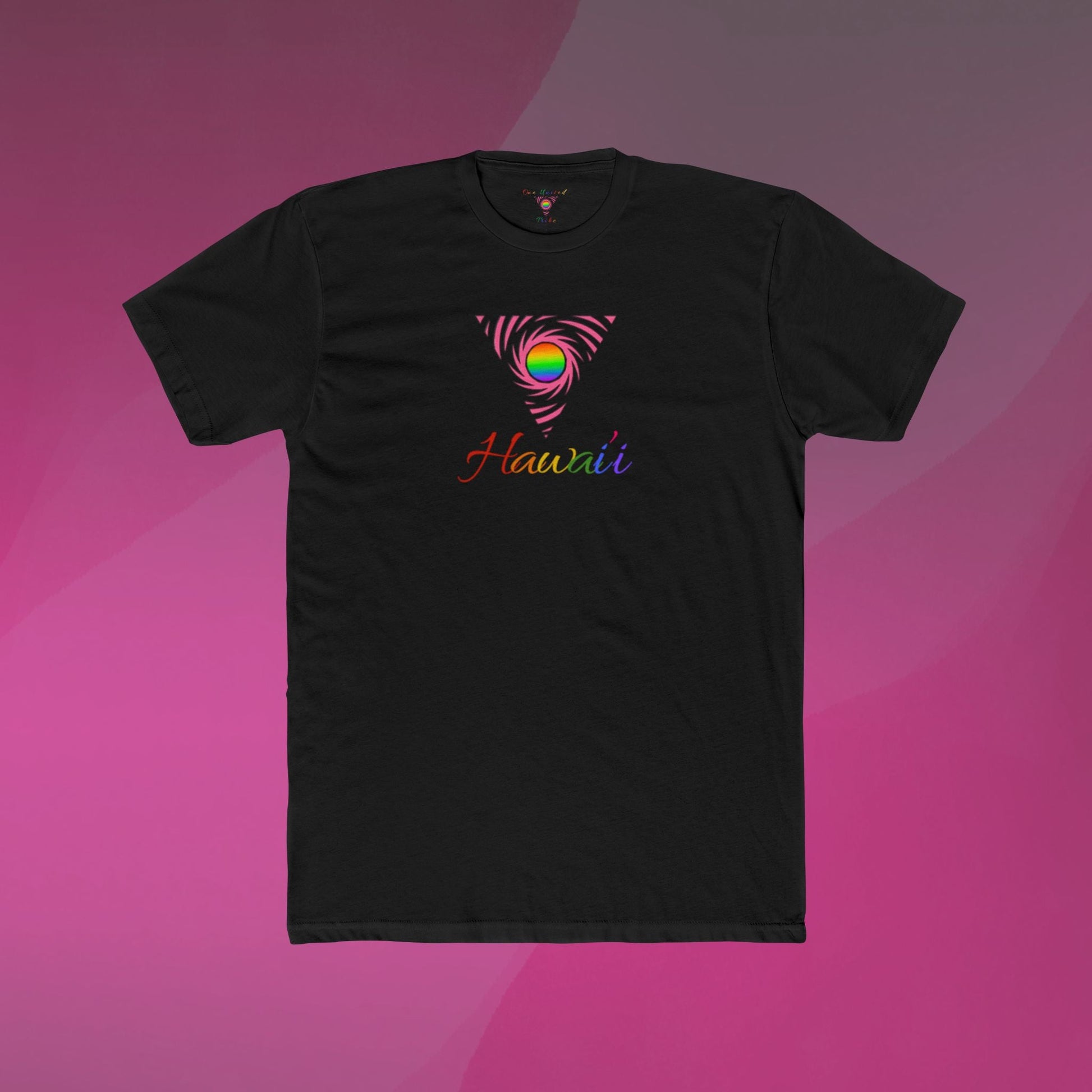 Celebrate Hawaiian pride and LGBTQ+ unity with the Hawaiian Pride Triangle Tee. This shirt features a dynamic tribal-inspired triangle design framing a rainbow-hued circle at the center, symbolizing inclusivity, connection, and the vibrant diversity of the Hawaiian spirit. Below the triangle, "Hawai'i" is elegantly written in rainbow-colored script, adding a touch of island pride.