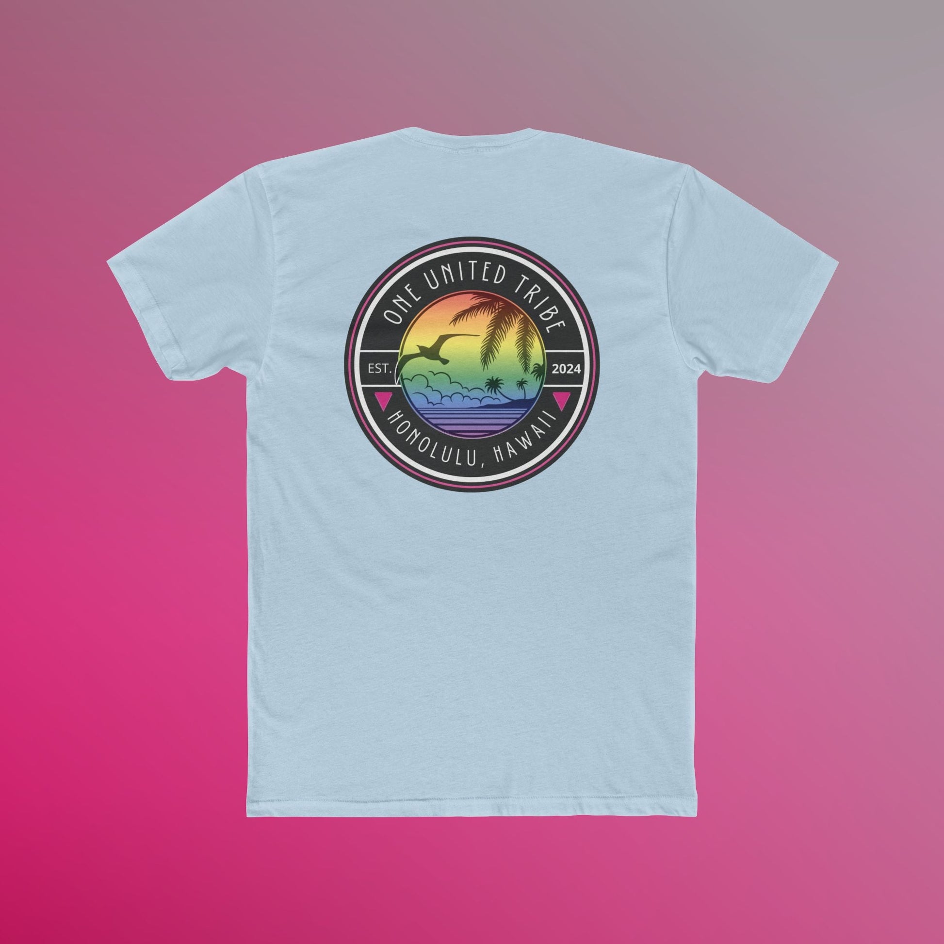 Celebrate your pride and love for the islands with the LGBTQ+ Pride Beach T-shirt. Featuring a bold and unique beach-inspired design with the LGBTQ+ pride flag colors, this shirt represents inclusivity, unity, and connection to the LGBTQ+ community. With Honolulu, Hawaii proudly displayed alongside the One United Tribe message, this shirt brings together tropical vibes and a powerful symbol of pride and equality.
