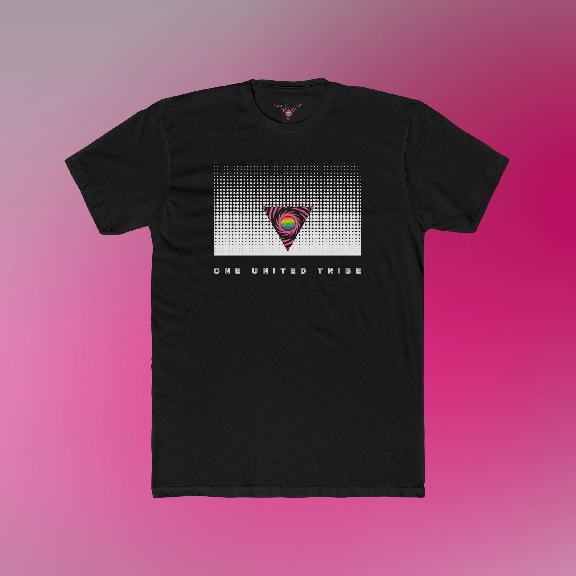 Make a powerful statement with the One United Tribe Pink Triangle T-shirt, designed to symbolize strength, unity, and resilience within the LGBTQ+ community. Featuring a bold pink triangle graphic on a sleek black background, this shirt is a tribute to the activism and solidarity that define the movement. The gradient dot design creates a modern, eye-catching effect that draws attention to the message of One United Tribe—a reminder that we are all connected and stronger together.