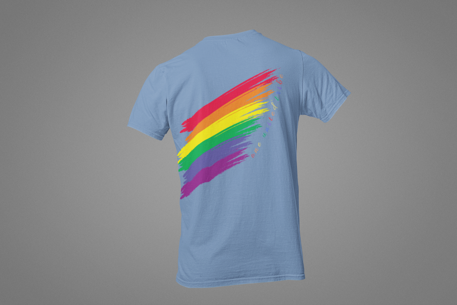 Express your pride with this bold Pride Brushstroke T-Shirt. Featuring a dynamic rainbow brushstroke across the front, this design radiates with vibrant colors that symbolize love, unity, and inclusivity. The signature "One United Tribe" text flows alongside the brushstroke, adding a meaningful message of togetherness and support within the LGBTQ+ community.