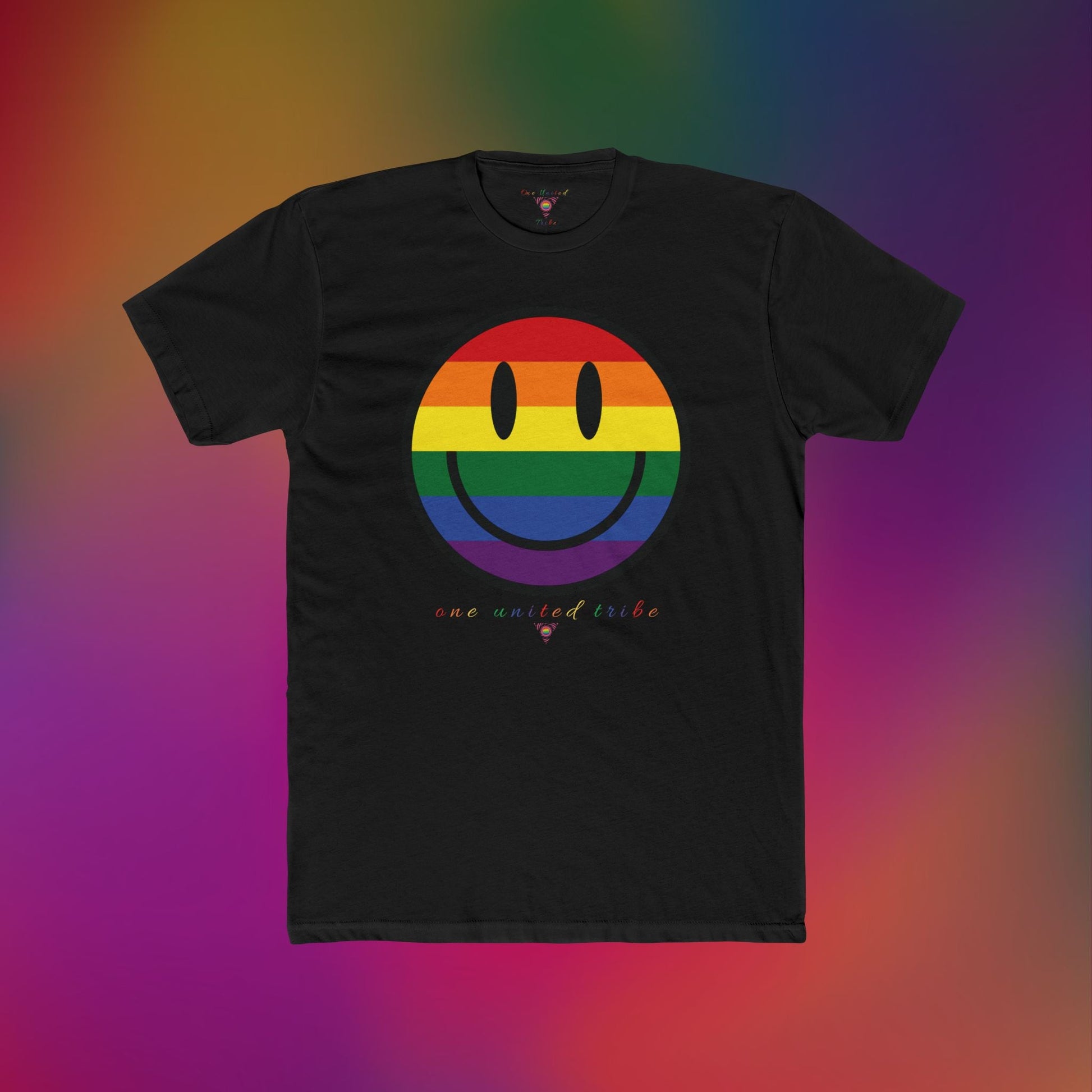 Spread joy and pride with the Pride Smiley T-Shirt. Featuring a classic smiley face wrapped in vibrant rainbow stripes, this design radiates positivity and inclusivity. The simple yet powerful "One United Tribe" message underneath symbolizes unity and love across the LGBTQ+ community, making this shirt a perfect expression of both happiness and pride.