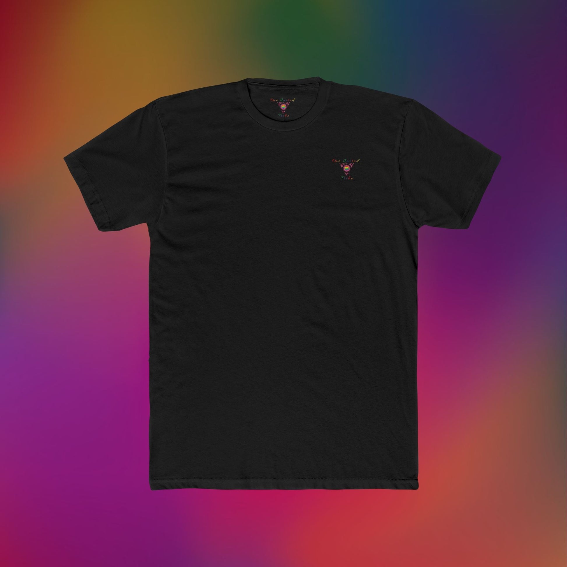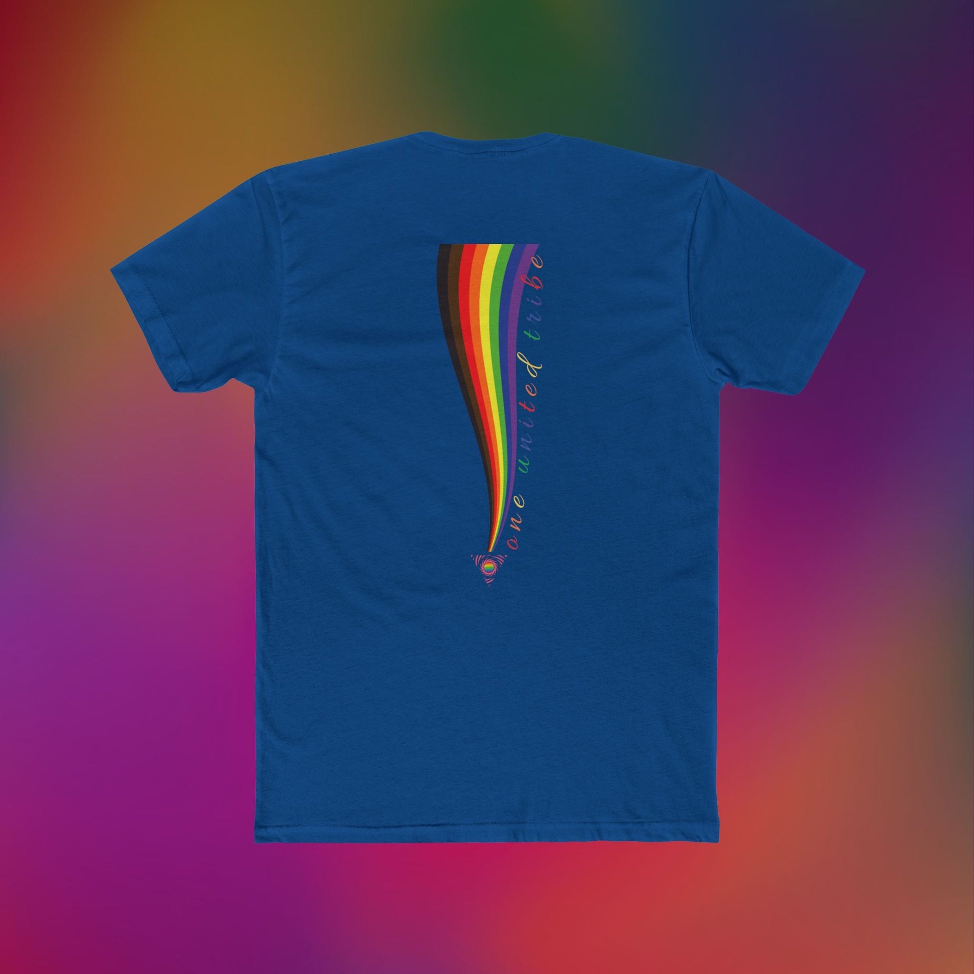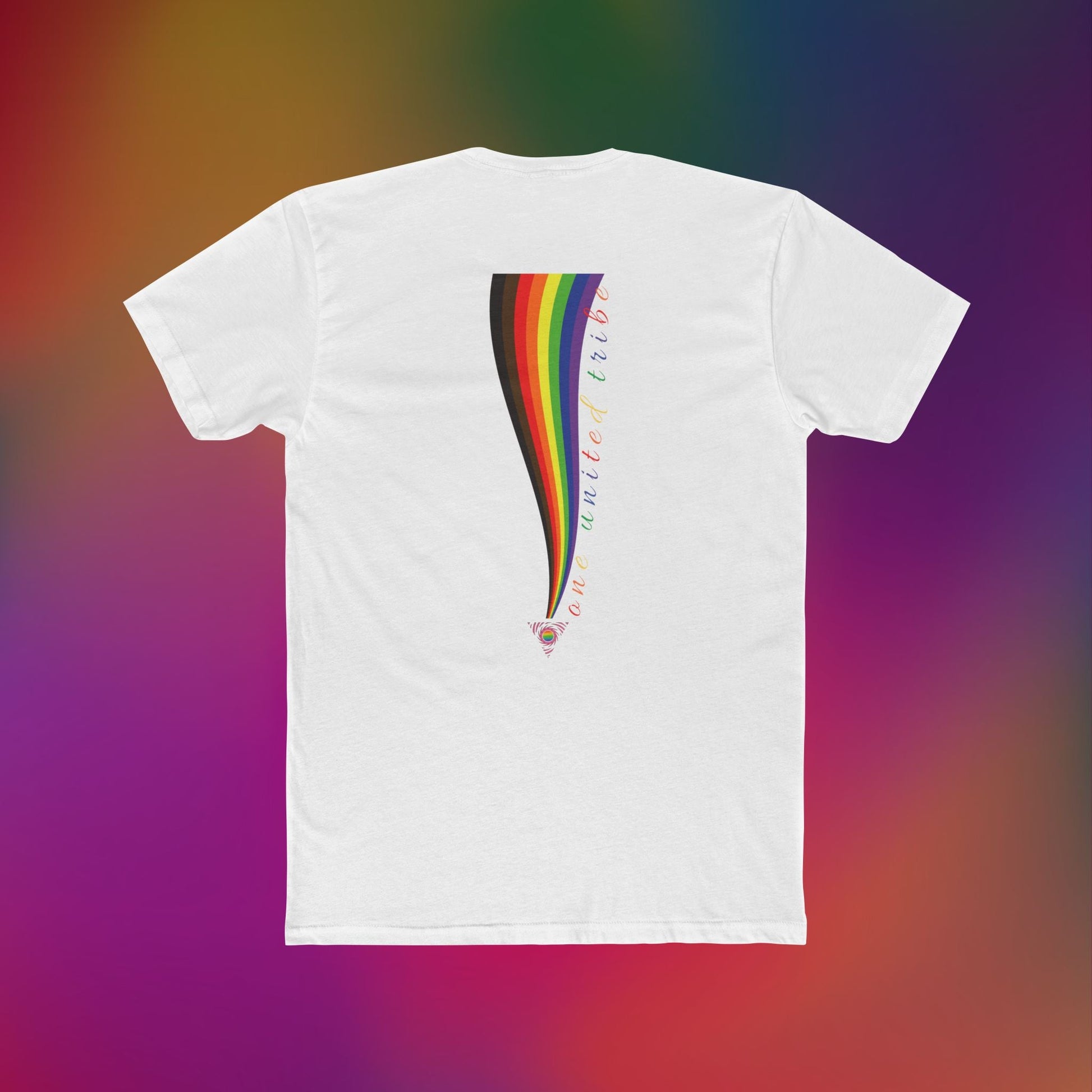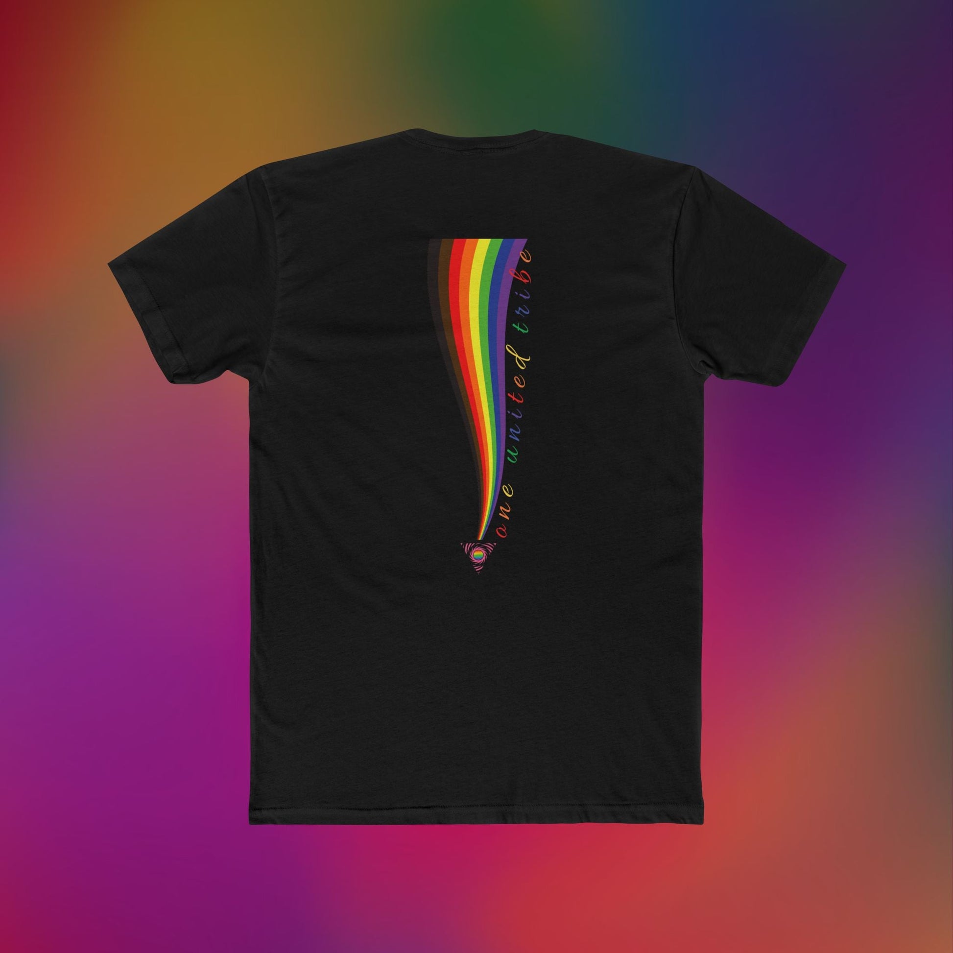 Show your true colors with this sleek and stylish Rainbow Flow Pride T-Shirt. The design features a vertical rainbow stripe flowing down the back, ending with the signature "One United Tribe" phrase. This powerful and minimalistic design embodies unity, pride, and the celebration of diversity within the LGBTQ+ community.