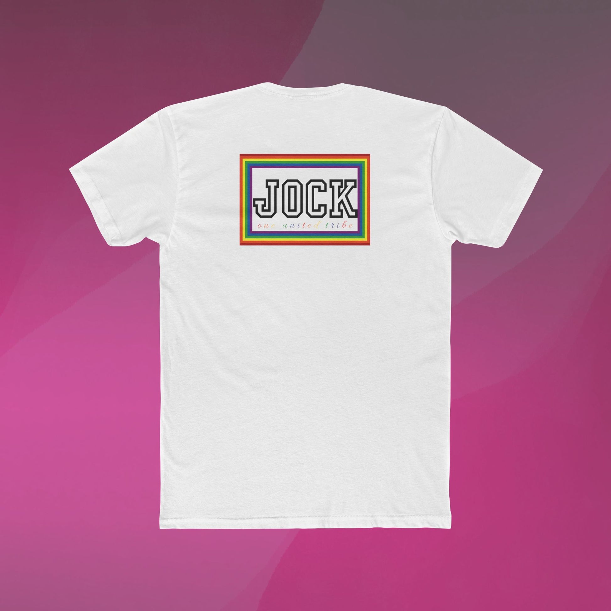 Celebrate athleticism and pride with the bold Jock Pride T-Shirt! Featuring a striking "JOCK" logo encased in a vibrant rainbow frame, this shirt embraces both LGBTQ+ identity and sporty energy. Below the logo, the phrase "one united tribe" adds a message of unity and inclusivity. This tee is perfect for anyone who identifies with the jock lifestyle or simply wants to express their pride with confidence.