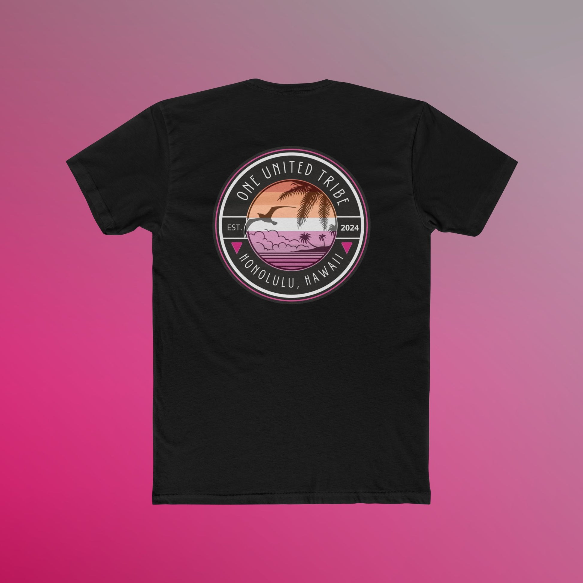 Celebrate your pride and love for the islands with the Lesbian Pride Beach T-shirt. Featuring a bold and unique beach-inspired design with the lesbian pride flag colors, this shirt represents inclusivity, unity, and connection to the LGBTQ+ community. With Honolulu, Hawaii proudly displayed alongside the One United Tribe message, this shirt brings together tropical vibes and a powerful symbol of pride and equality.