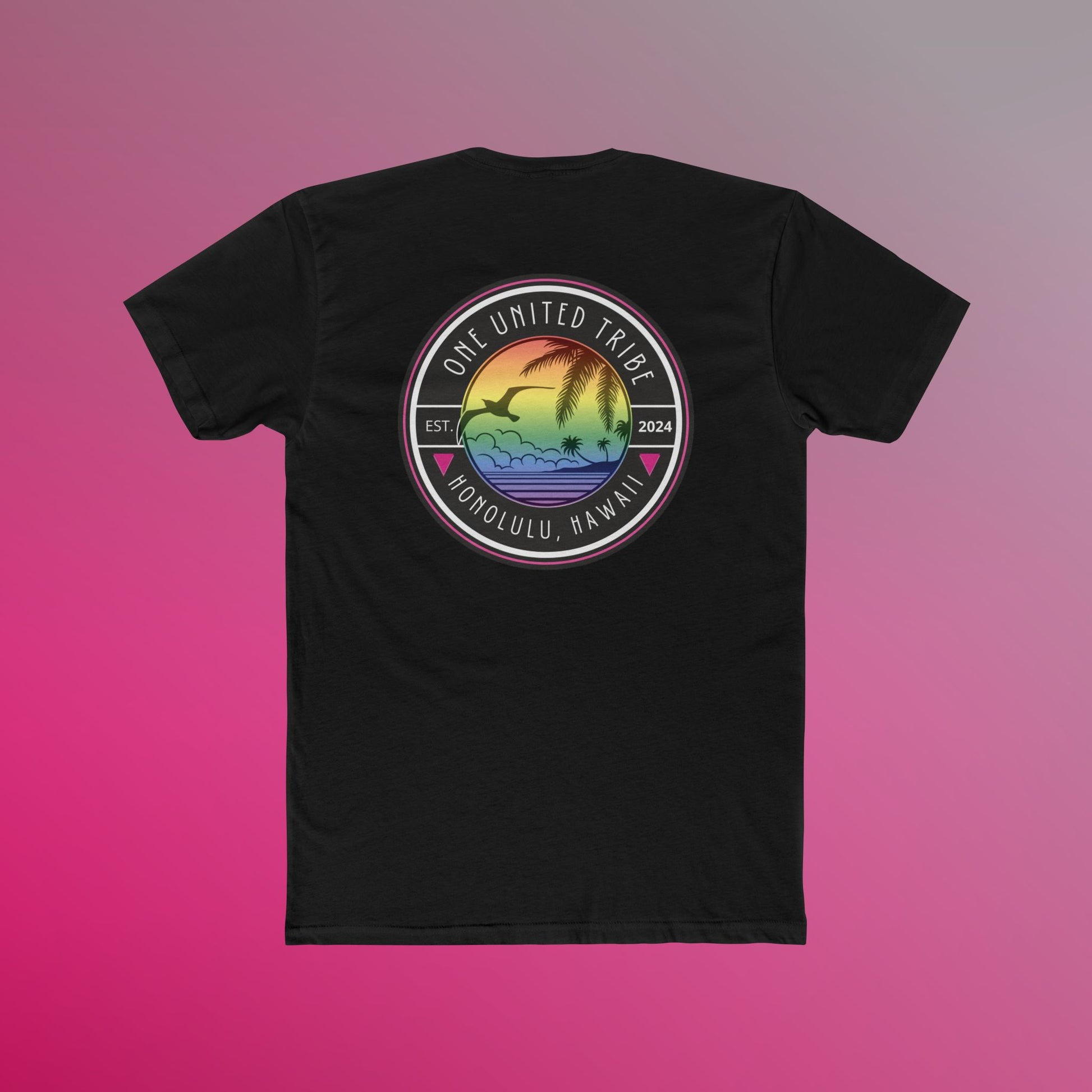 Celebrate your pride and love for the islands with the LGBTQ+ Pride Beach T-shirt. Featuring a bold and unique beach-inspired design with the LGBTQ+ pride flag colors, this shirt represents inclusivity, unity, and connection to the LGBTQ+ community. With Honolulu, Hawaii proudly displayed alongside the One United Tribe message, this shirt brings together tropical vibes and a powerful symbol of pride and equality.